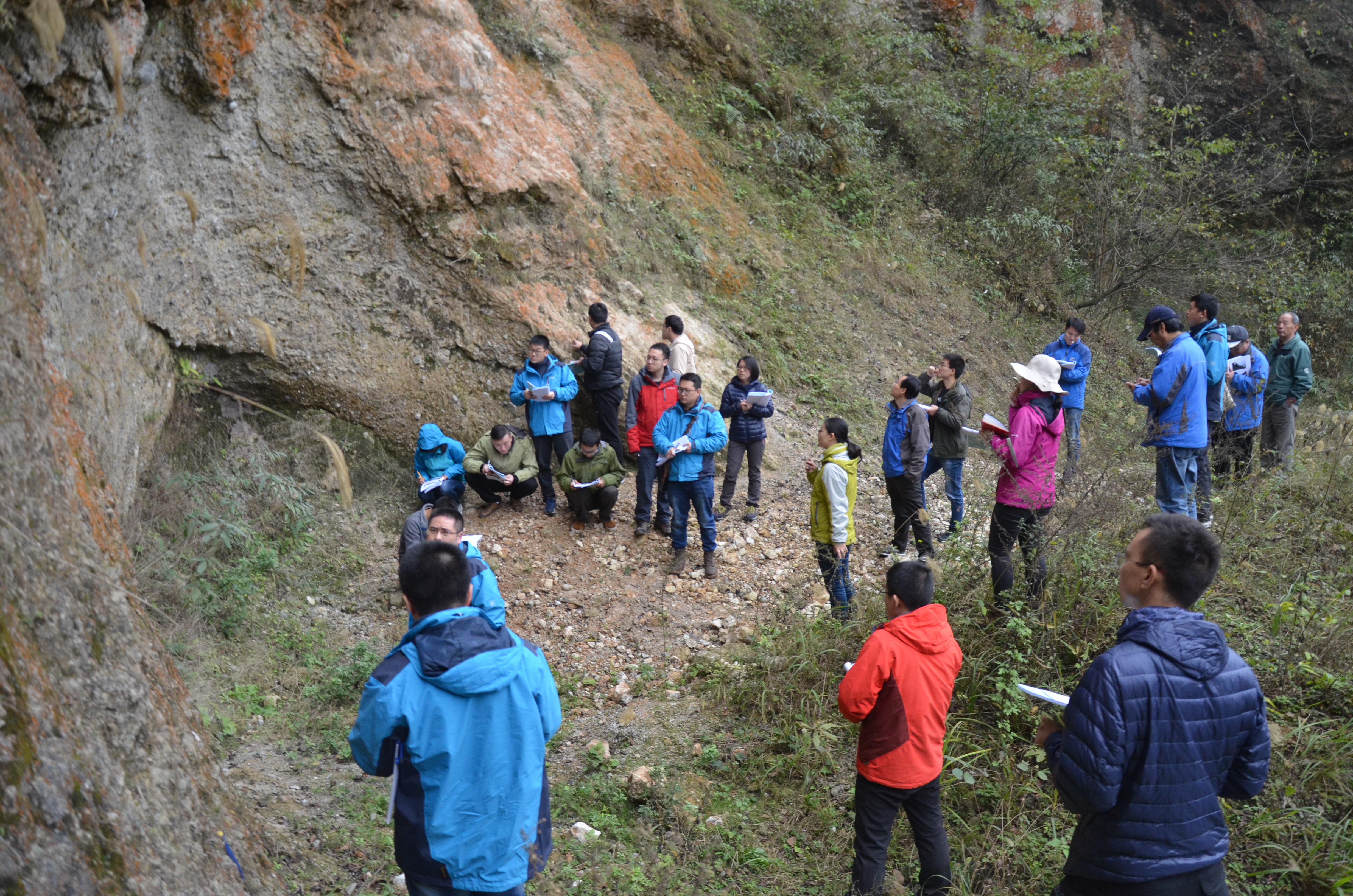 今年的培训会相较于去年,重点对参加培训人员在构造现象的野外观察、描述、记录等方面的能力进行了强化培训,并对素描图的绘制、定向标本的采集等进行了系统示范。参加培训会的人员纷纷表示,通过本次培训会对龙门山构造带有了进一步的认识,对逆冲推覆构造、构造变形等构造现象有了更直观的感受,并对露头尺度的构造解析方法与思路有了更深入的了解。