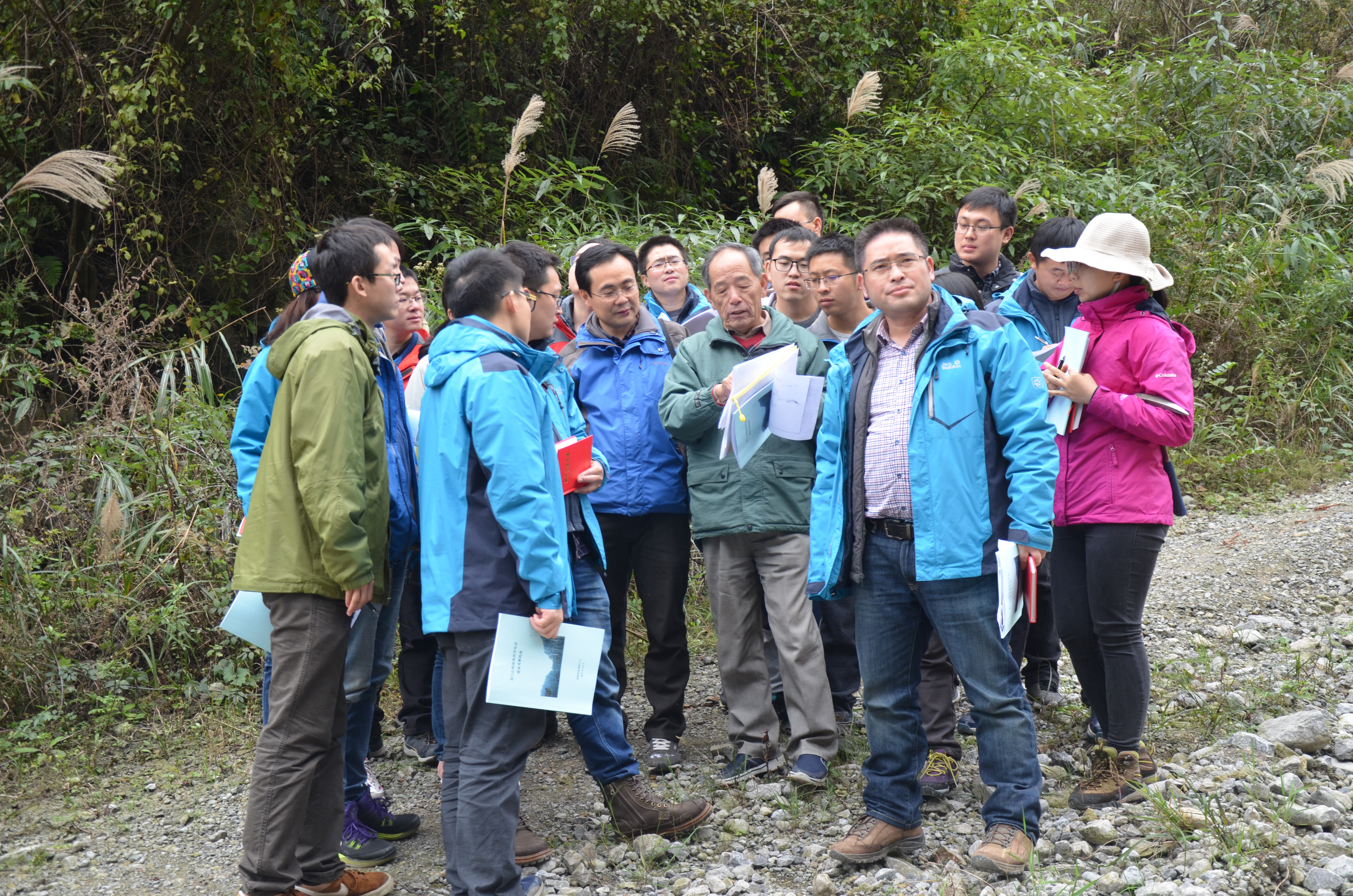 本次野外培训考察路线为葛仙山-白鹿-小鱼洞-耿达-卧龙-映秀-八角庙一线。该路线穿越龙门山的前山、中央和后山推覆构造带,可观察到龙门山的前山断裂、中央断裂和后缘断裂带及其相关的构造岩、龙门山逆冲推覆构造相关的飞来峰和滑覆体构造、汶川地震形成的地表破裂带等构造现象。本次培训考察安排了三天时间。